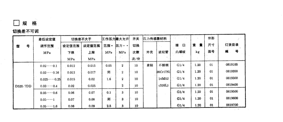 抗振性能:D520/7DD:40 m/ s2,D520/7DDK:20 m/ s2