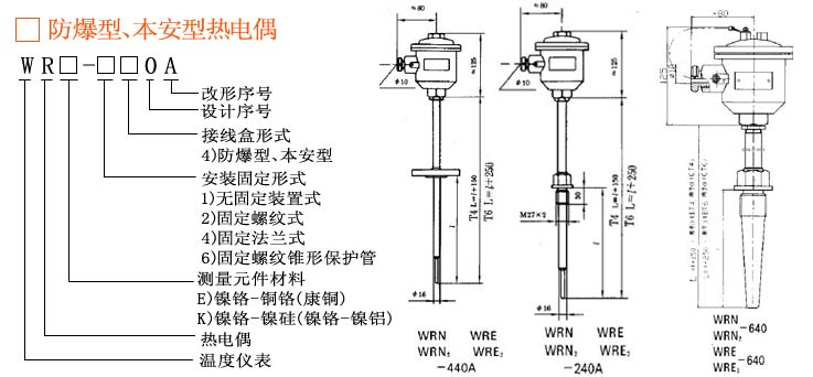 □隔爆型、本安型熱電偶的種類和規(guī)格